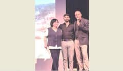 בתמונה: יו"ר עמותת ידידי מרכז רפואי רבין פנחס (פיני) כהן, שורד השבי אלון אהל, מנהלת מחלקת...