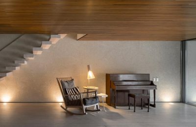 עיצוב מרחבים מודרניים עם מדפי מתכת שחורים.
