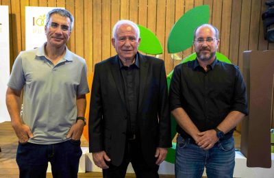 מימין: גיורא מרום מנכ"ל קבוצת "חקלאי גרנות", שר החקלאות אבי דיכטר ועמית בן יצחק יו"ר...