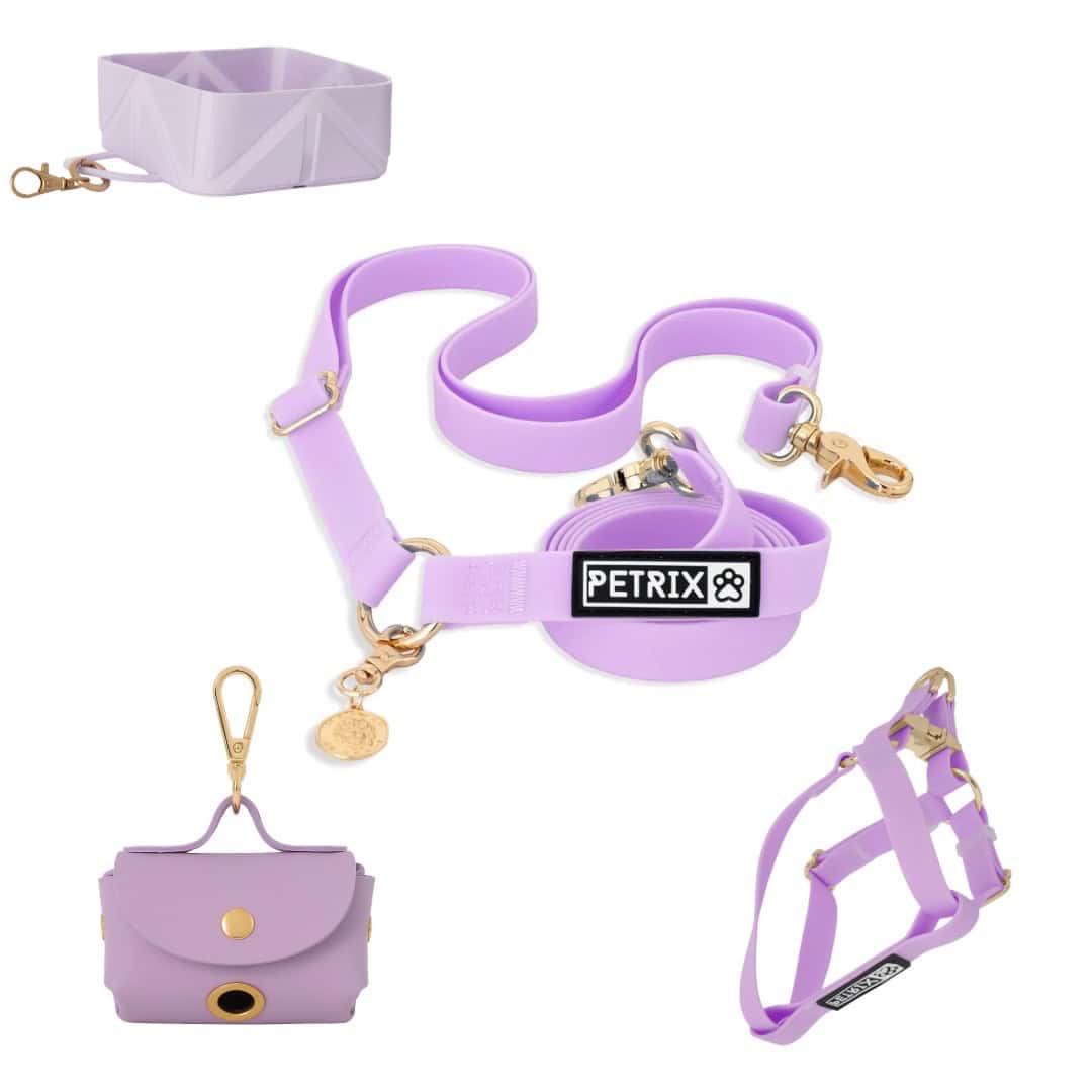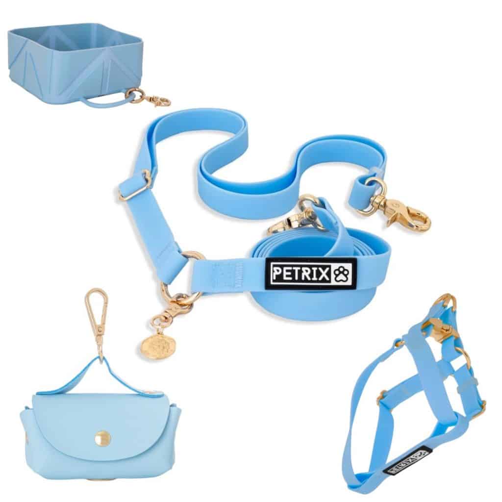 "PETRIX" הסט המלא רצועה ללא ידיים, רתמה או קולר, תיק לשקיות צרכים וכלי מים במתנה – צילום: יח"צ "PETRIX"