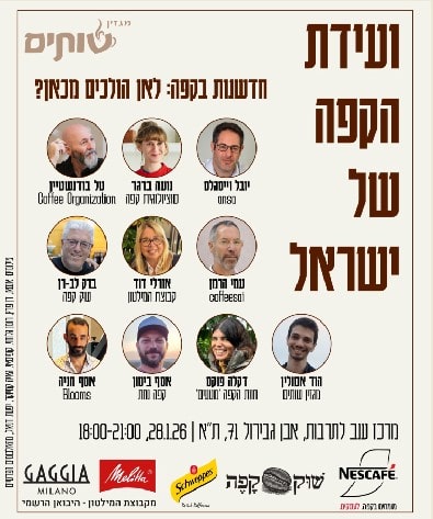 ועידת הקפה של ישראל – 28.1.26 (יום רביעי), 18:00 עד 21:00, מרכז ענב לתרבות, אבן גבירול 71, תל אביב. מספר המקומות מוגבל, כרטיסים לרכישה רק במגזין שותים: https://www.shotim.co.il/shop/israel-coffee-con/