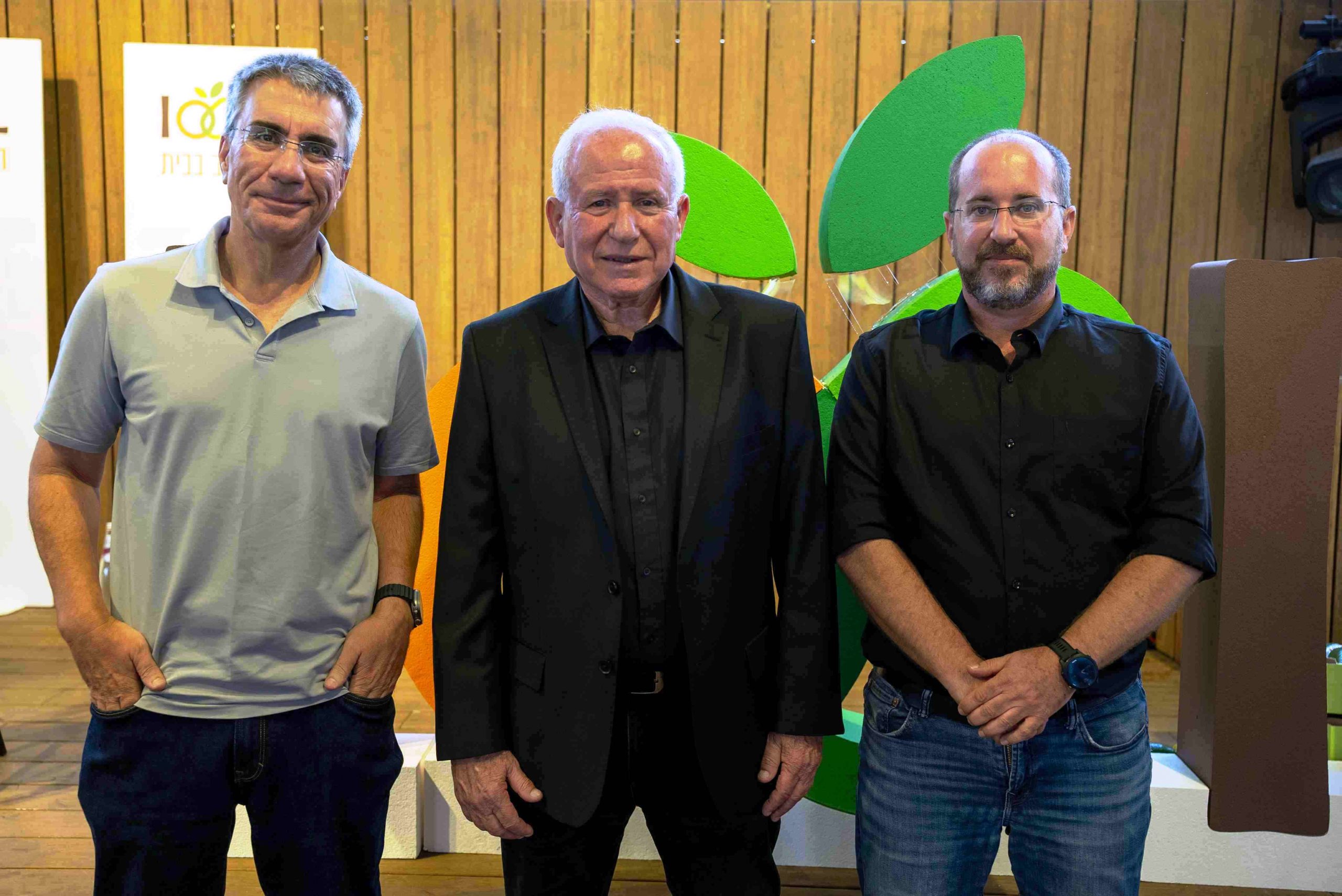 מימין: גיורא מרום מנכ"ל קבוצת "חקלאי גרנות", שר החקלאות אבי דיכטר ועמית בן יצחק יו"ר "חקלאי גרנות" – צילום: צופית דמרי