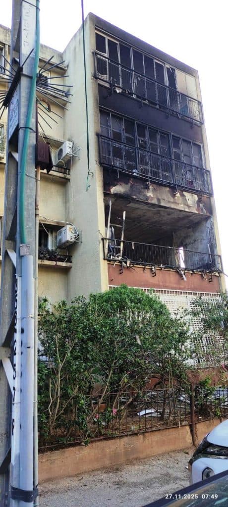 הבניין השרוף בסוקולוב 13 כפר סבא – צילום: חבר הנציגות אבי ניסן