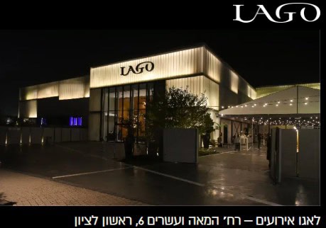 רשת LAGO הוקמה ב 2015 בבסיס המחשבה, להוביל סטנדרט חדש בעולם האירועים, האירוח והכנסים, המאפשר תפירה אישית לכל חלום; באחד הלוקיישנים היפים במרכז, בראשון לציון, על שפת אגם קסום מוקף צמחיית פרא, שוכן מרכז הכנסים והאירועים, LAGO מקום ללא גבולות בו ניתן לברוא כל פנטזיה, להוציא לפועל כל חלום ולצאת לכל הרפתקה. הקומפלקס העצום בגודלו מכיל 3 מתחמי אירועים, לכל אחד מהם עיצוב ומאפיינים ייחודיים: Spirit – החלל של ספיריט מתפרש על שטח של 1600 מ"ר, מתנשא לגובה 7 מטרים ללא מפלסים ועמודים, ומיועד להעניק חוויה לכל החושים לכ-540 עד 2,500 אורחים; Soul -הבוטיקי, הביתי והאינטימי: מתחם בוטיק יפהפה לאירועי יוקרה עד 450 אורחים, הנפרש על 700 מ"ר של חלל אלגנטי ואינטימי, עם פינות לאונג' חמימות מול האגם; ודואאה – הגן המודרני, על שפת אגם ציורי. בכל המתחם ניתן לקיים אירועים עד 4,500 איש.