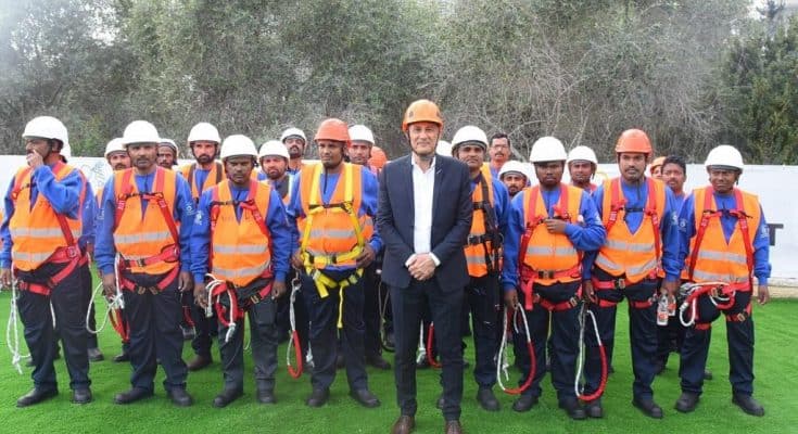 אלדד ניצן עם קבוצת עובדים זרים בענף הבניה – צילום: מורג ביטן