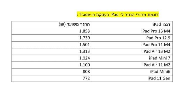החל מה-1 בפברואר תאפשר ללקוחותיה לקבל החזר על מכשיר ה- iPad שברשותם ולשדרג עצמם למכשיר iPad חדש בעסקת טרייד אין משתלמת במיוחד.